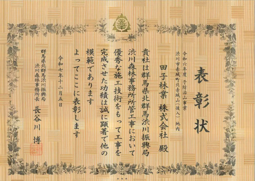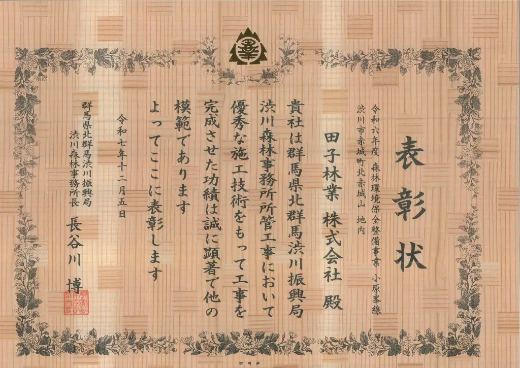 令和7年度 渋川森林事務所長表彰受賞